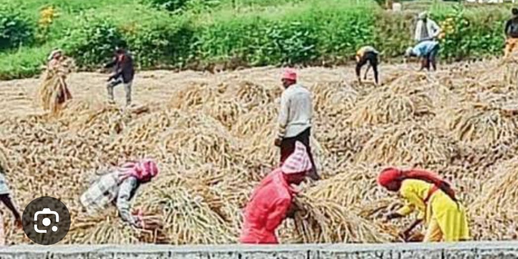 धान कापणी बांधणीसाठी मजुर मिळेना शेतकरी विवंचनेत