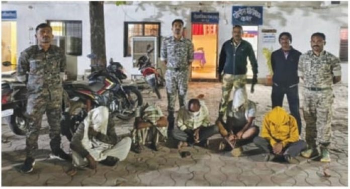या कारवाईत विलास माकोजी सुरजागडे (५५), चंदु गणपती चौधरी (५०), मारोती यादव नानगिलवार (७५), दशरथ उद्रु बारसागडे (५०) व बंडु केशव दुधबडे (४८) सर्व रा. लखमापुर बोरी यांना अटक करण्यात आली आहे. तर या तस्करी रॅकेटमधील मुख्य सहभागी गोपिचंद मनोहर चलाख (३५) हा फरार असून पोलीस त्याच्या शोधात आहेत.