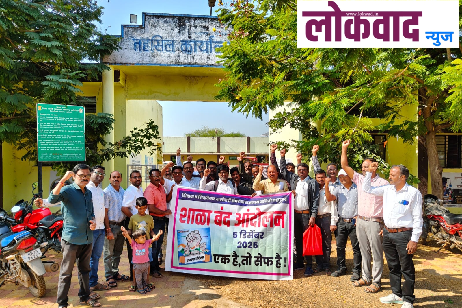 टीईटी संदर्भातील सर्वोच्च न्यायालयाच्या निर्णयावर पुनर्विचार याचिका दाखल करावी, शिक्षक, शिक्षकेतर कर्मचाऱ्यांना जुनी पेन्शन योजना पूर्ववत लागू करावी, शिक्षण सेवक योजना रद्द करून नियमित वेतनश्रेणी लागू करावी, शिक्षकेतर कर्मचाऱ्यांची भरती प्रक्रिया तात्काळ सुरू करावी, अशा विविध प्रलंबित मागण्यासाठी आज चामोर्शी तालुक्यातील शिक्षक शिक्षकेतर कर्मचारी समन्वय समिती तर्फे तहसील कार्यालय येथे एक दिवसाचे आंदोलन करून तहसीलदार साहेबांच्या मार्फ़तिने शासनाला निवेदन पाठवण्यात आले.याप्रसंगी संघटनेच्या पदाधिकारी यांनी आपापले मतं मांडले, त्यामध्ये त्यांनी सांगितलं की सर्वोच्च न्यायालयाच्या TET विषयक अनिवार्यतेच्या निर्णयास अनुसरून प्राथमिक शिक्षकांना संरक्षण देण्यासाठी पुनर्विचार याचिका दाखल करण्यास अनावश्यक विलंब केला जात आहे. तसेच शिक्षण विभागाकडून निकालाचा चुकीचा अर्थ घेऊन सुरू असलेल्या कार्यवाहीमुळे राज्यातील शिक्षक वर्गामध्ये तीव्र असंतोष निर्माण झाला आहे. शिक्षकांच्या TET व इतर प्रलंबित मागण्या अनेक वर्षे प्रलंबित राहिल्यामुळे राज्यातील शिक्षकांमध्ये असंतोष तीव्र होत आहे. शासनाने या मागण्यांकडे सकारात्मक व संवेदनशील दृष्टिकोनातून त्वरित निर्णय घेणे अत्यावश्यक आहे.. शिक्षक हा समाजाचा मार्गदर्शक घटक आहे. शासनाने या मागण्यांवर तातडीने सकारात्मक निर्णय घेऊन शिक्षकांचा विश्वास संपादन करावा. मात्र, शासनाने कोणताही निर्णय न घेतल्यास नागपूर येथील हिवाळी अधिवेशनात राज्यभरातील शिक्षक मोठ्या संख्येने एकत्र येऊन आंदोलन करतील, त्यानंतर महाराष्ट्रातील सर्व शाळा बंद ठेवून मुंबई येथे मोठे धरणे आंदोलन करण्यात येईल.त्याचा पहिला टप्पा म्हणून आज ५ डिसेंबर रोजी सर्व राज्यभरातील शाळां बंद आहेत.याप्रसंगी राजेश बाळराजे जिल्हा नेते ,संतोष गोटमुकुलवार जिल्हा सहसचिव ,पुरुषोत्तम पिपरे सल्लागार ,जनार्धन गेडाम सरचिटणीस , अविनाश बारसागडे कार्याध्यक्ष , उमेश जेंगठे ,रवींद्र घोंगडे , राजेश मूलकलवार ,संतोष मेंदाळे ,गुरूदास सोमनकर ,मार्कंडी मिटपल्लिवार तसेच चामोर्शी तालुक्यातील विविध संघटनांचे पदाधिकारी तसेच मोठ्या संख्येने शिक्षक, शिक्षिका वर्ग उपस्थित होते.