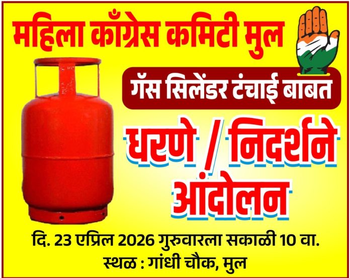 या आंदोलनात गॅस टंचाई, वितरणातील अडथळे आणि नागरिकांना होत असलेल्या गैरसोयीच्या विरोधात आवाज उठवण्यात येणार आहे. “आपल्या न्याय हक्कासाठी आणि सुस्त प्रशासनाला जागे करण्यासाठी नागरिकांनी मोठ्या संख्येने सहभागी व्हावे,” असे आवाहन मुल तालुका काँग्रेस कमेटी, नगर परिषद पदाधिकारी, नगरसेवक तसेच बाजार समितीच्या पदाधिकाऱ्यांनी केले आहे.